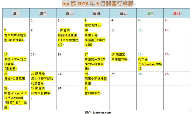 2018年 Joy 雙寶媽開團通知 (持續更新中) 已更新到12月