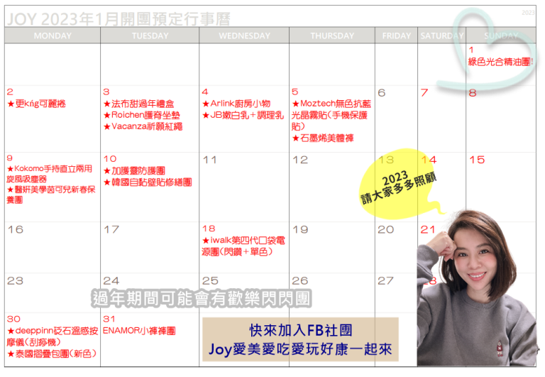 2023年 Joy雙寶媽開團預定行事曆 (每月更新)~12月行事曆來囉!