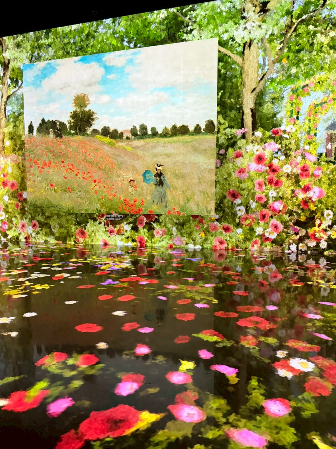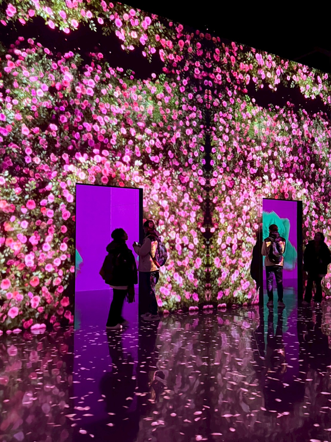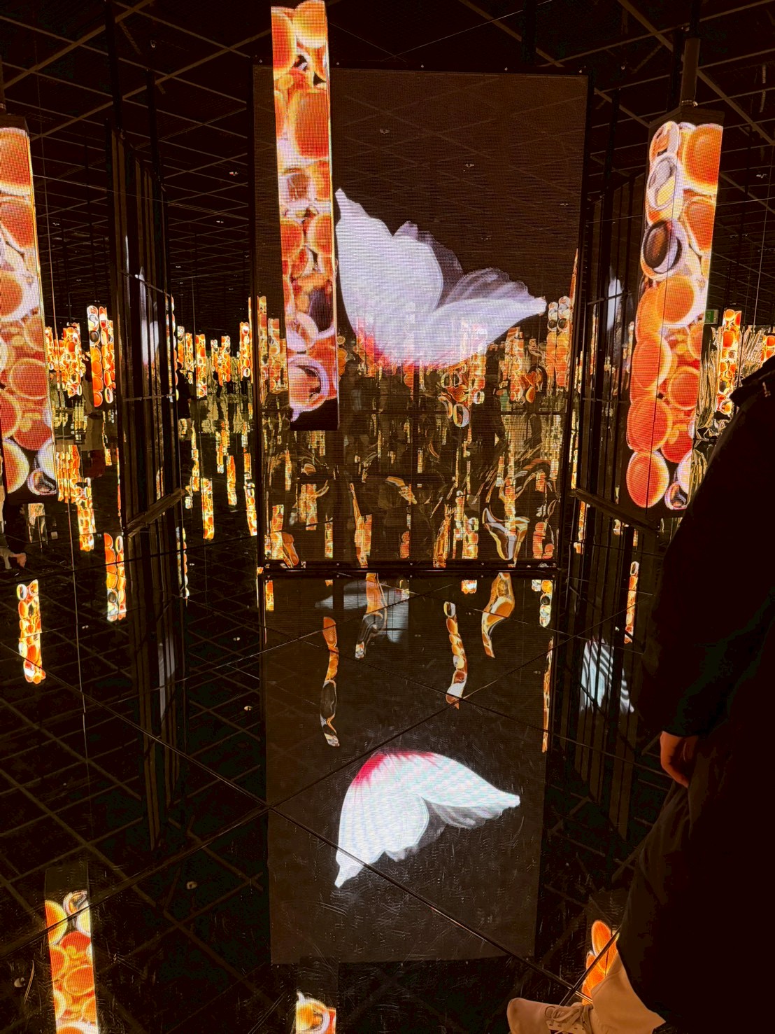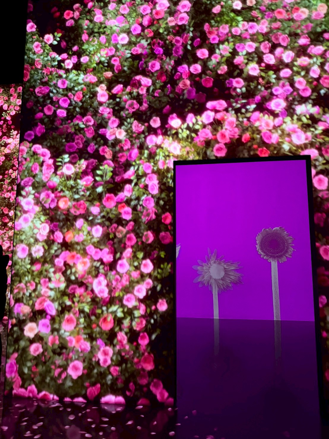空間挑高、尺度寬廣,是它最迷人的地方之一。每個展間都有完全不同的節奏與氛圍,有的震撼、有的療癒、有的神秘。你會明顯感受到:這不是單純的投影,而是「為這個空間量身打造的作品」。即使假日人潮較多,也不會有太過擁擠的壓迫感,整體體驗依然舒適喔!