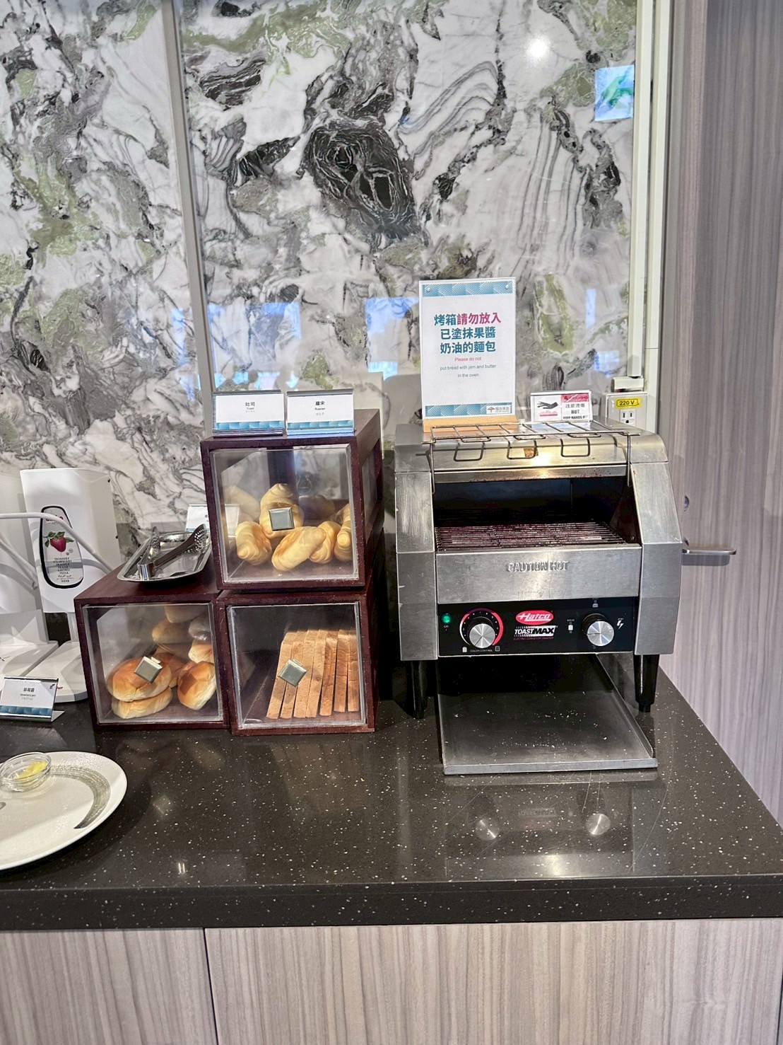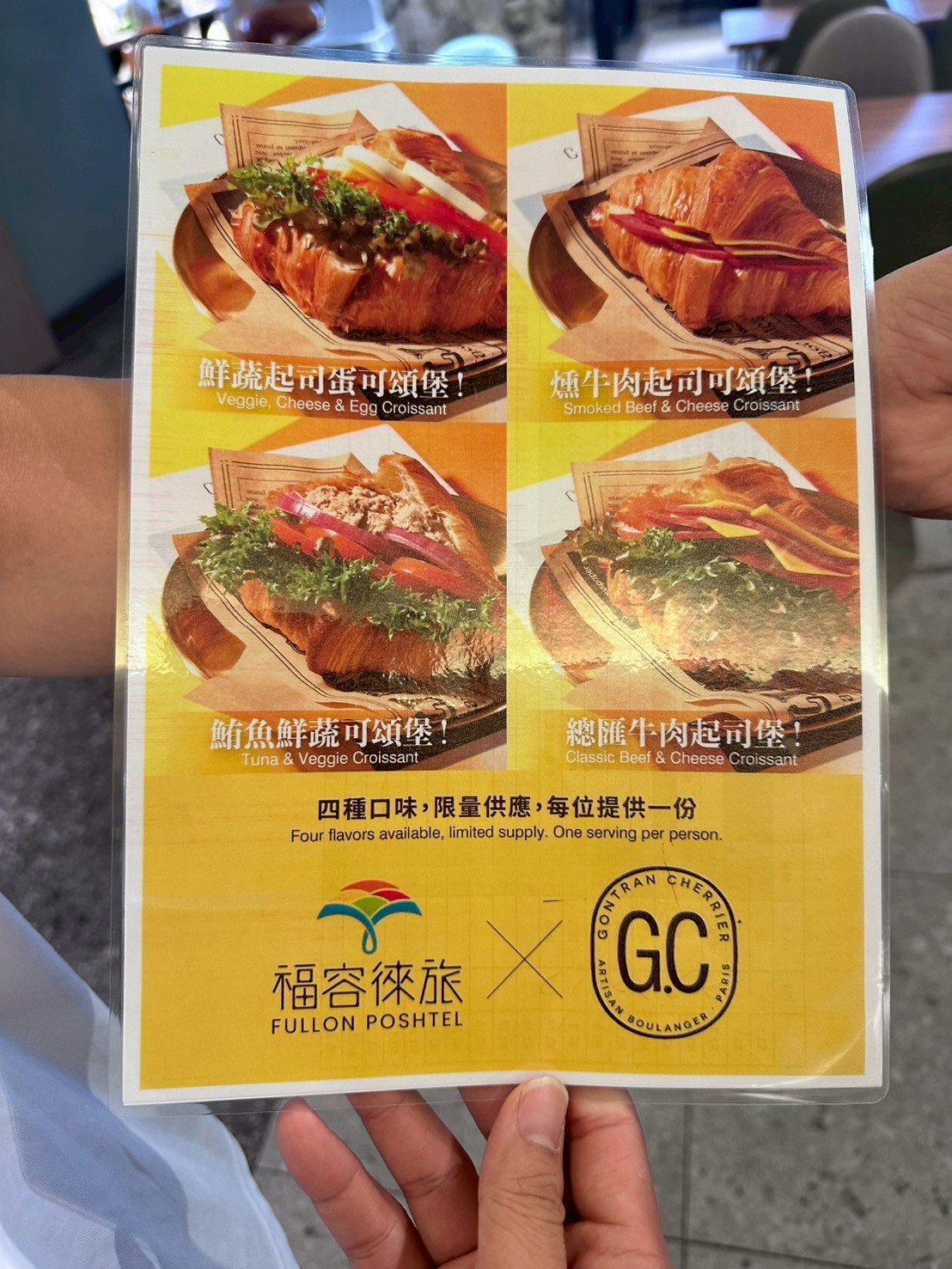 除中西式自助式早餐,還可以加點可頌堡,有4種內餡可選擇;吃不完還可以帶著走喔!
