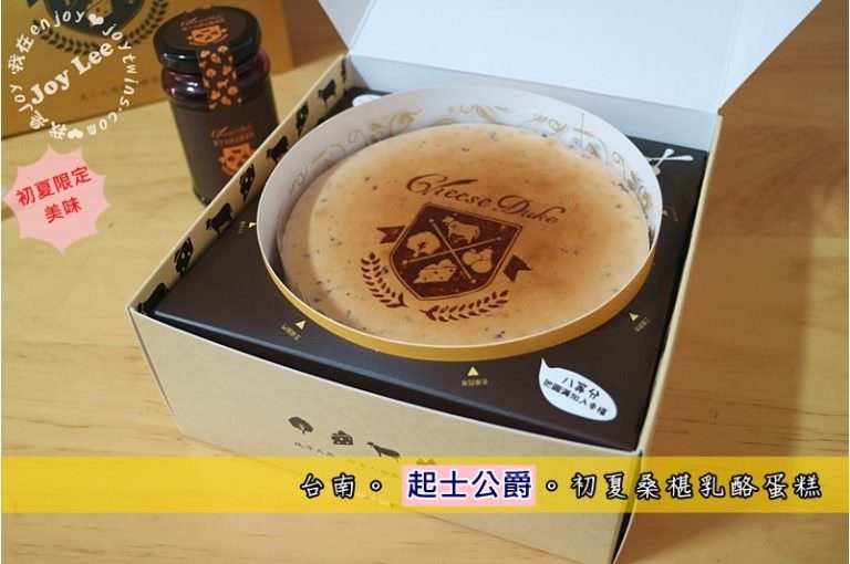 又到了團購美食的時間~~哈哈~起士公爵是台南永康的一間超美味起司蛋糕!現在除了全省實體店面都可以買得到,連網購都可以!!之前就聽雙寶小乾媽歐樂,想到這次奶爸一直在問我想不想吃~沒想到一吃就愛上!真的是好邪惡的美食呀!這次吃的是初夏桑椹乳酪蛋糕,屬於夏季限定款,以十足的乳酪香配上桑椹的芬芳酸甜,清爽無負擔的極致口感~~喜愛乳酪的乳酪控絕對會喜歡這款清爽微酸系的口感,快來看我的介紹~如果有想跟團的也可以注意一下!哈哈~