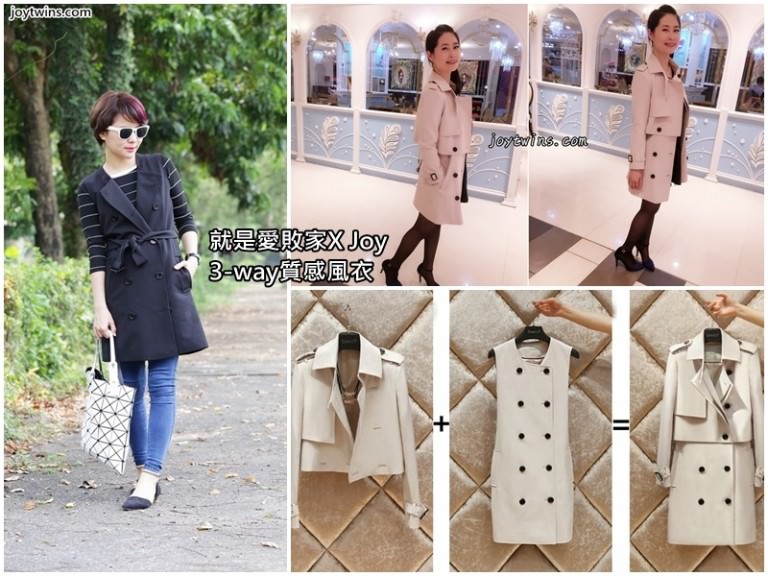 又來推薦就是愛敗家的超棒單品啦!上次的歐美風衣沒跟到的人不要傷心(已經斷貨了…)而有跟到的朋友一定都知道就是愛敗家的衣款單品絕對品質掛保證,價格又美麗!所以這一檔~不要錯過!因為~我都還沒po就有人下單買了!(笨笨的買原價~哈哈哈)這件三件式風衣不僅僅是大衣外套,還可另外拆開變成小外套及長版洋裝背心,是不是很神奇?(其實本來以為只有三種,後來發現可以變成五種以上的穿搭~卻只有一件價格真是太超值了)