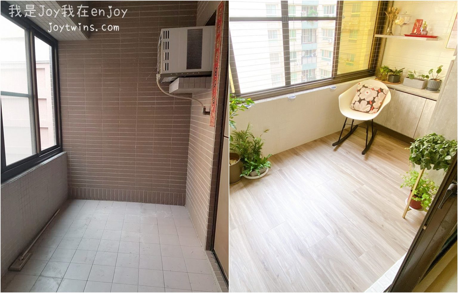 要詳細看鋪設地板可以看這邊紀錄: 陽台改造 SPC石塑地板讓我完成夢想中網美陽台 萌亞地板
