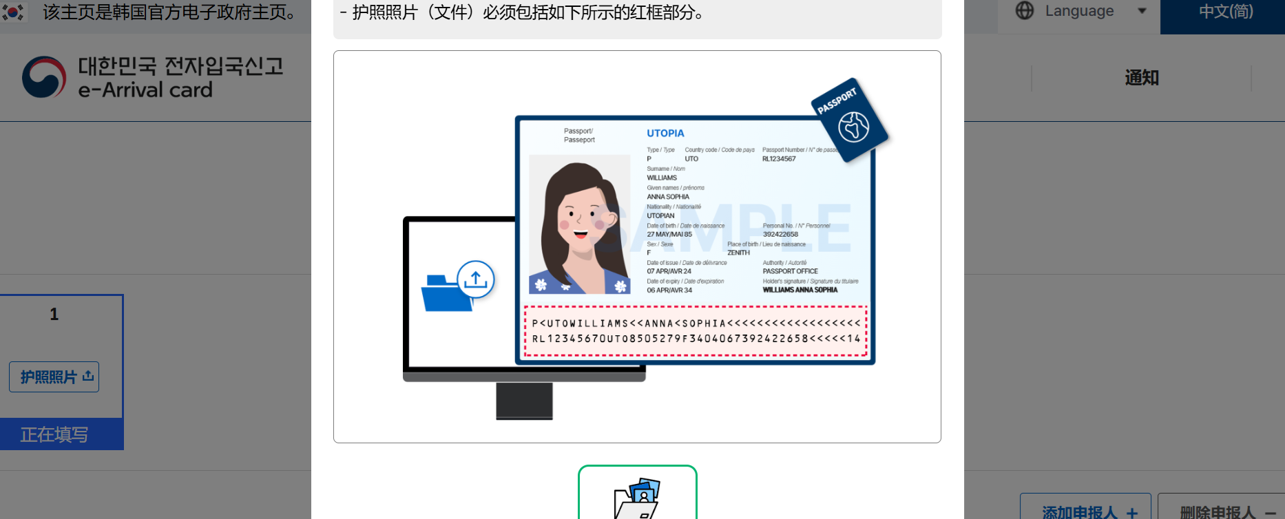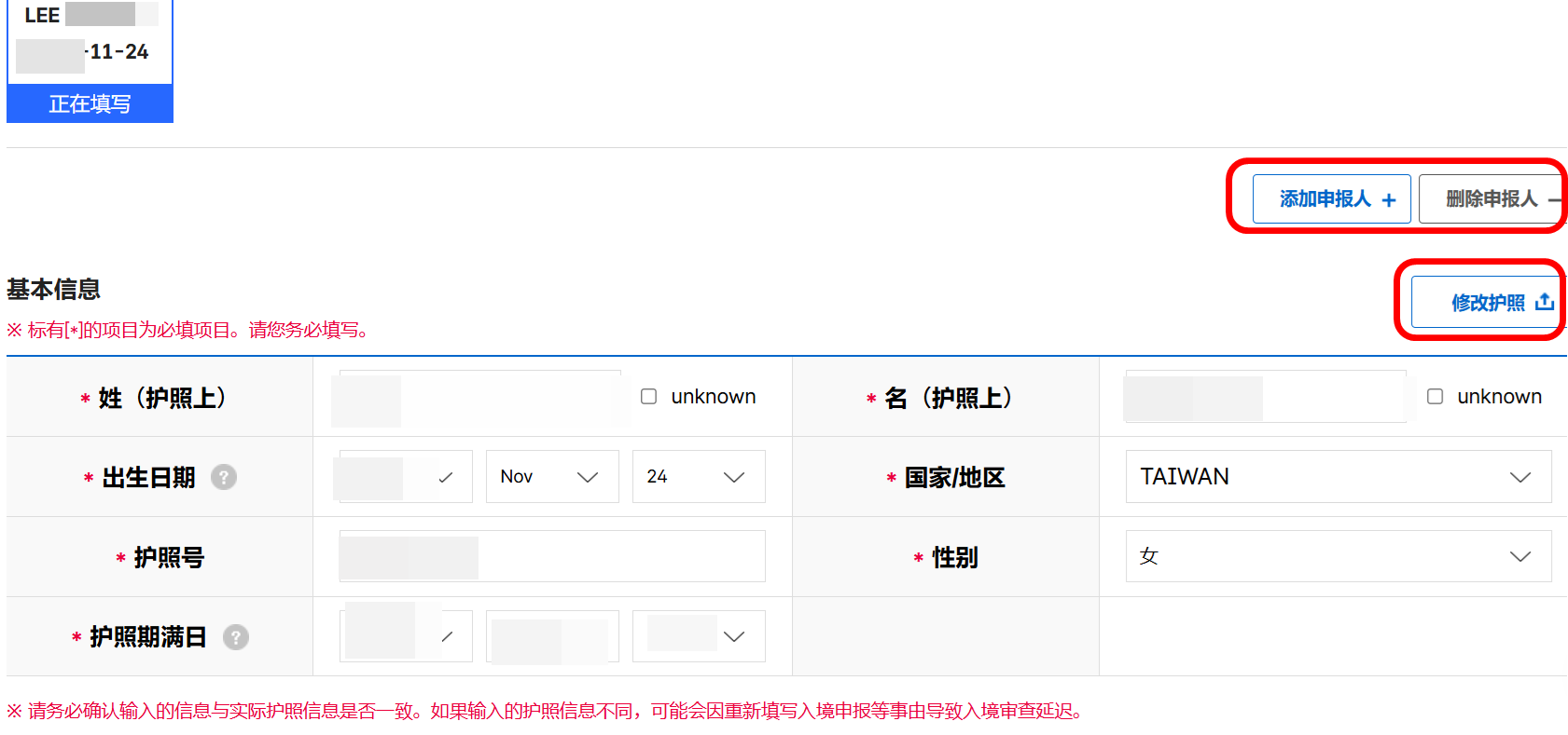 如果一次申報多人,可以先按右上角的添加申報人+,再重複護照照片上傳的步驟增加。