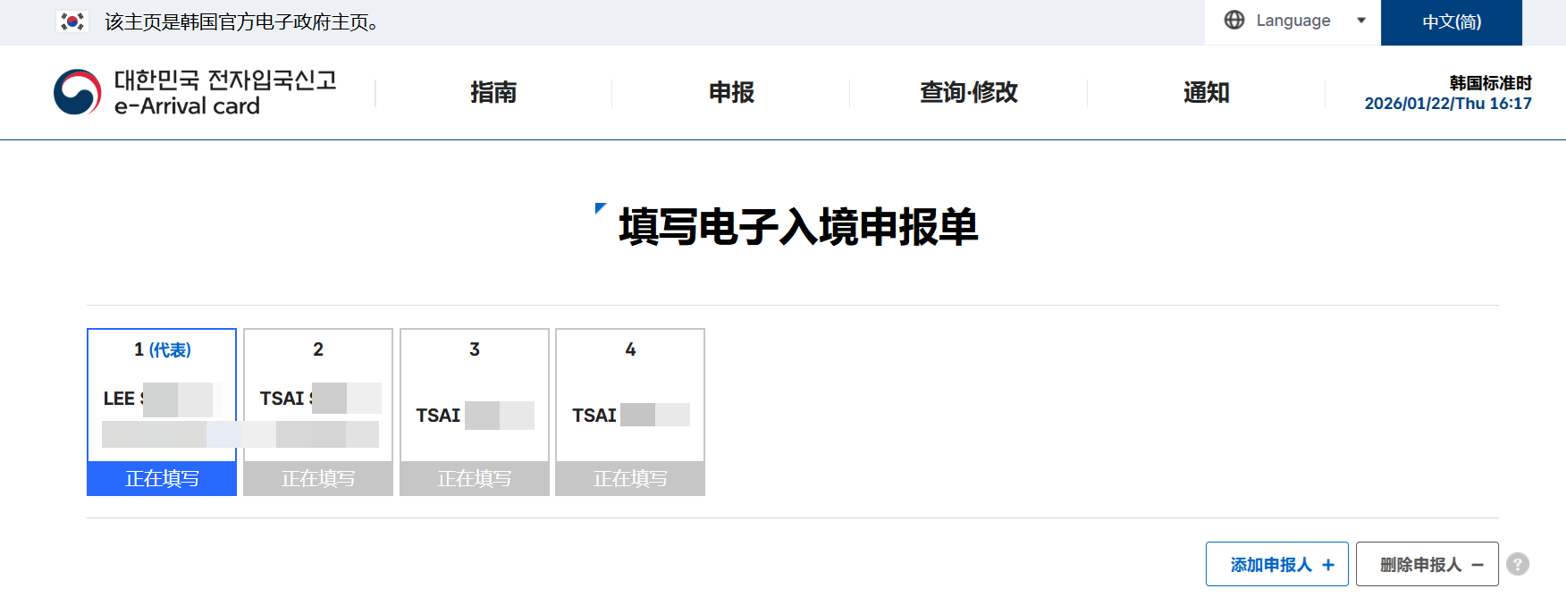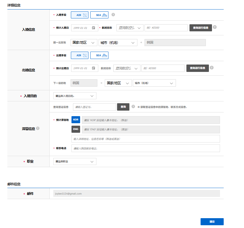 韓國電子入境卡填寫步驟