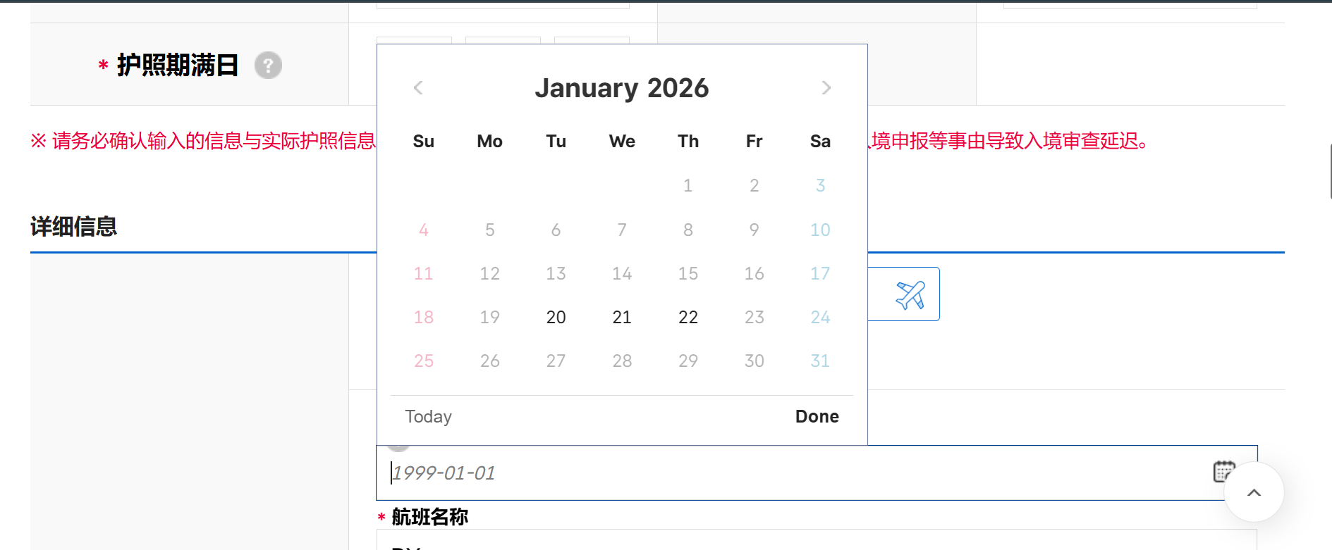 包括出入境日期、航班號碼、住宿地址跟電話(通常會填寫飯店資料)