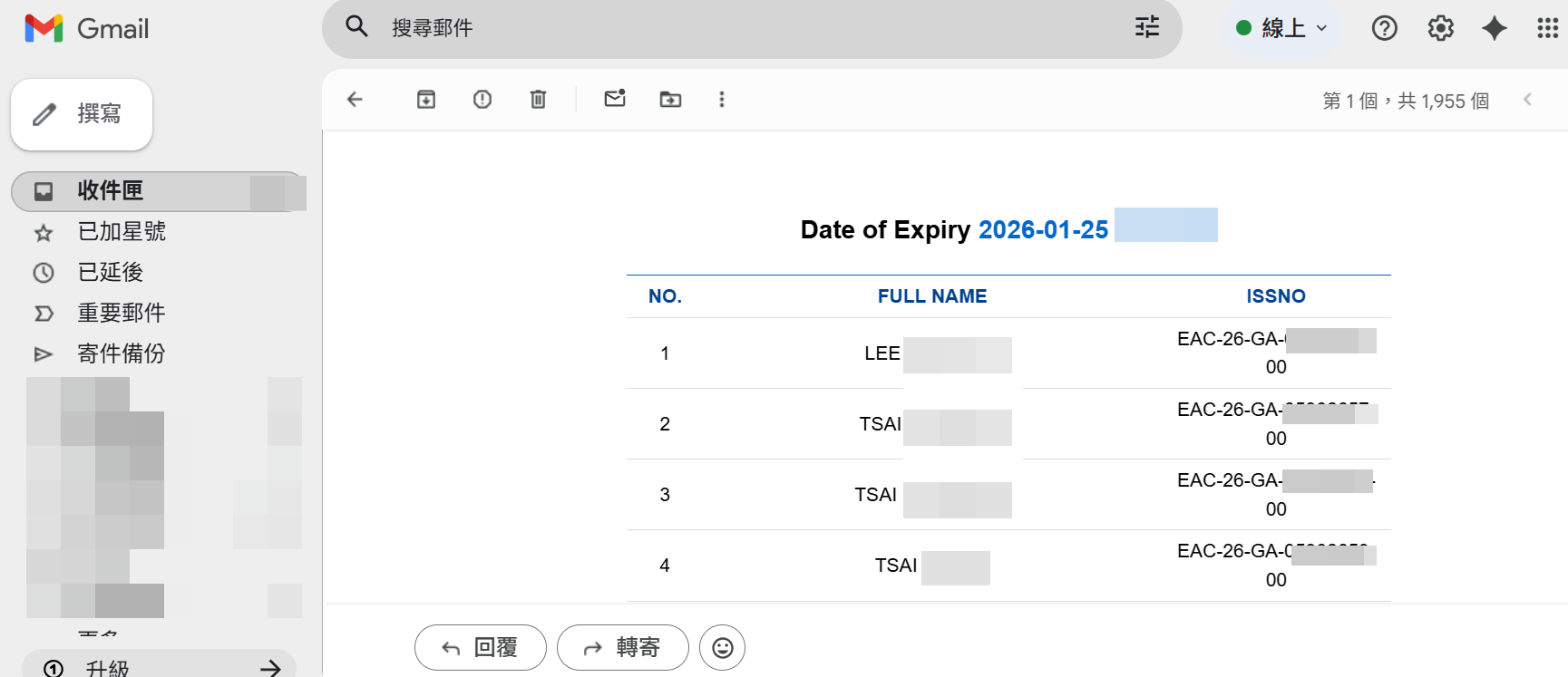 都填寫完就按右下角提交即可。接著可以在官網頁面上看到你的資料,也會寄送到email信箱內。