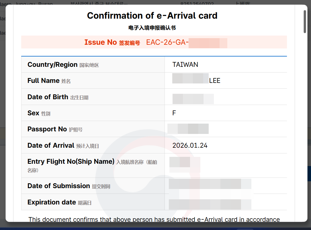 韓國自2026年1月1日起為了簡化入境流程,開放當天以及往後2天(共三天)入境的旅客,在官方線上填寫即可,就不用在飛機上或機場手寫紙本囉!適用於空中或海上入境的國外旅客喔!省時便利。實際填起來也真的很快啦!