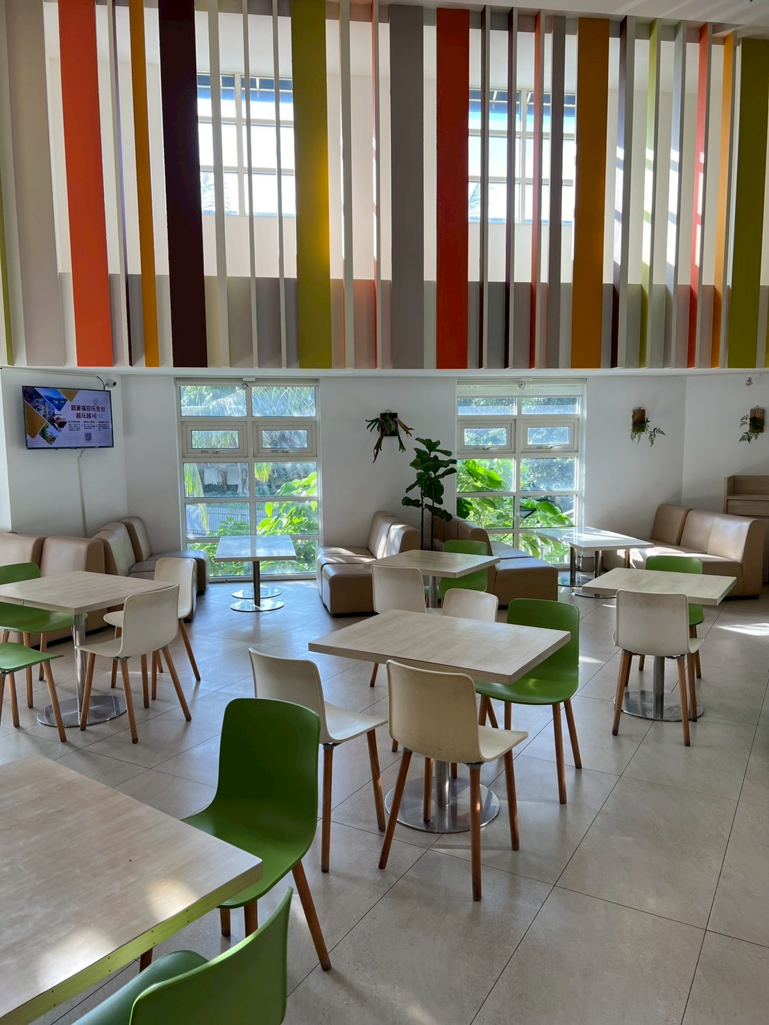 公共空間採用大量落地窗與木質調設計,陽光灑進來的氛圍,讓人一進門就感受到度假氣息。
