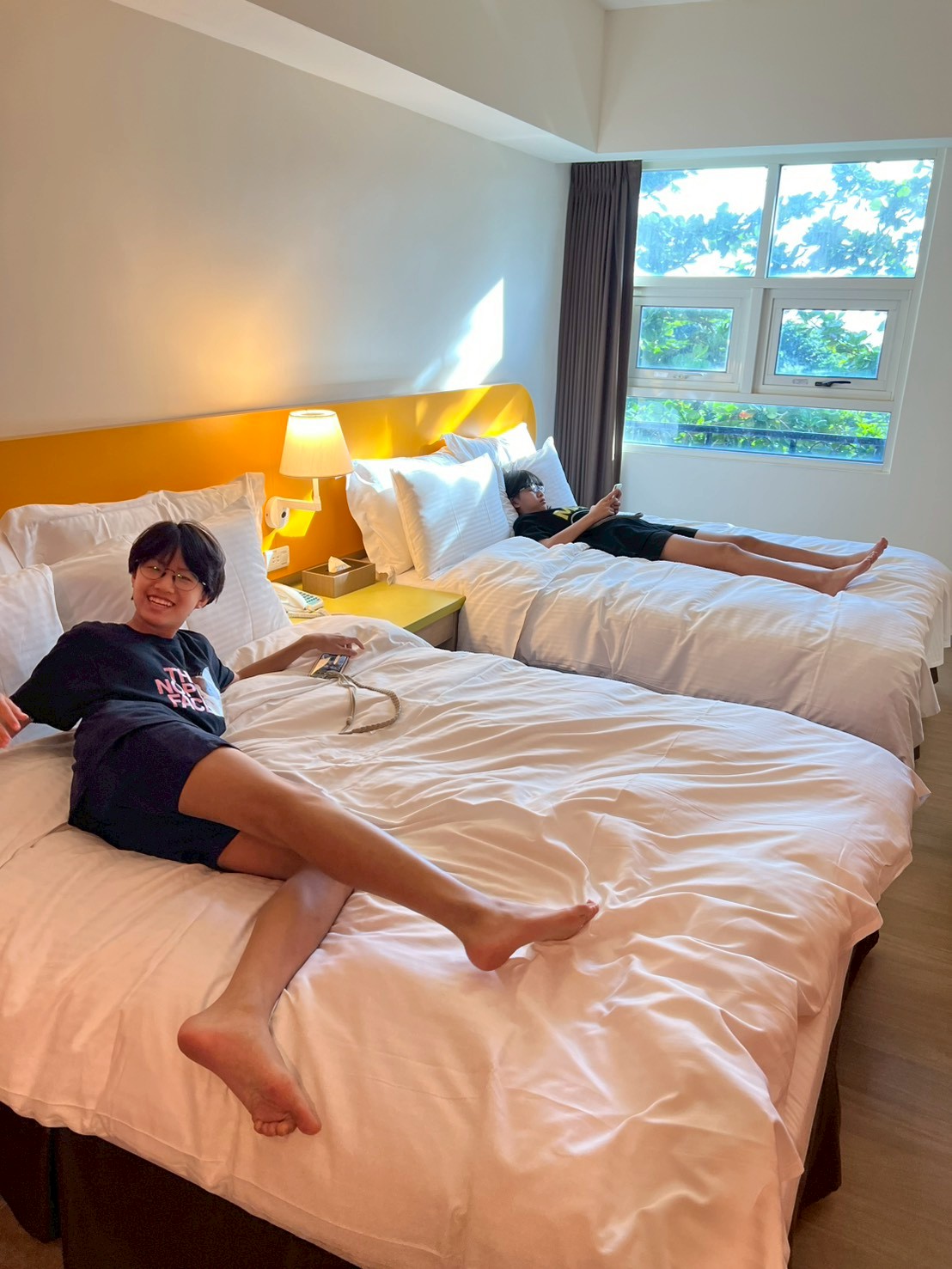 房型選擇多元,不管是雙人房、三人房、四人家庭房通通有,空間乾淨俐落、色調溫柔舒心,無論是情侶、朋友還是親子家庭,都能找到合適房型。