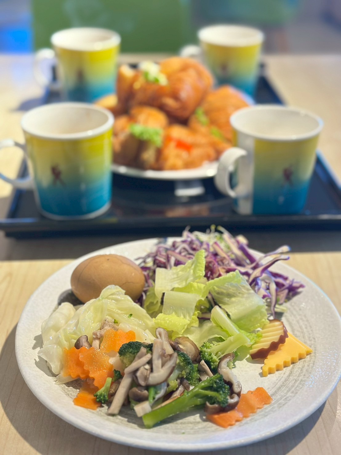 早餐則以中西合併的自助餐形式呈現,有現烤可頌、沙拉與熱食,讓旅客從早晨開始就能享受度假的滋味。