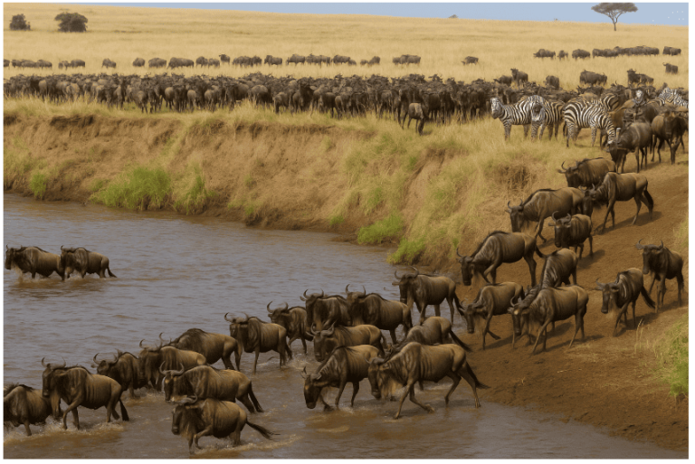 最佳觀賞時期:7–10 月為高峰期,動物過河場景極有戲劇張力