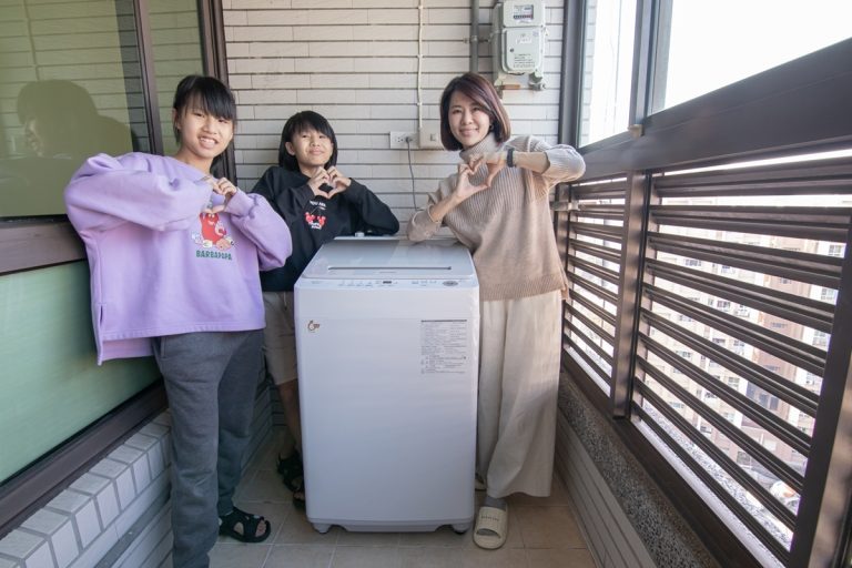 目前新家後陽台屬於比較窄長、廚房後門也比較小,還好選擇了這台夏普直立式無孔槽洗衣機,讓我的後陽台空間不會太擁擠。