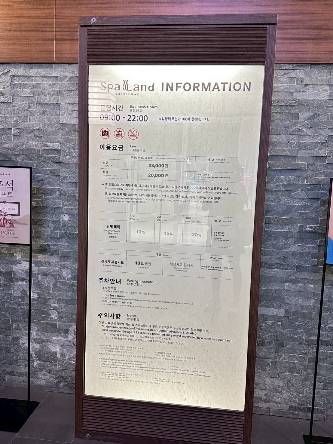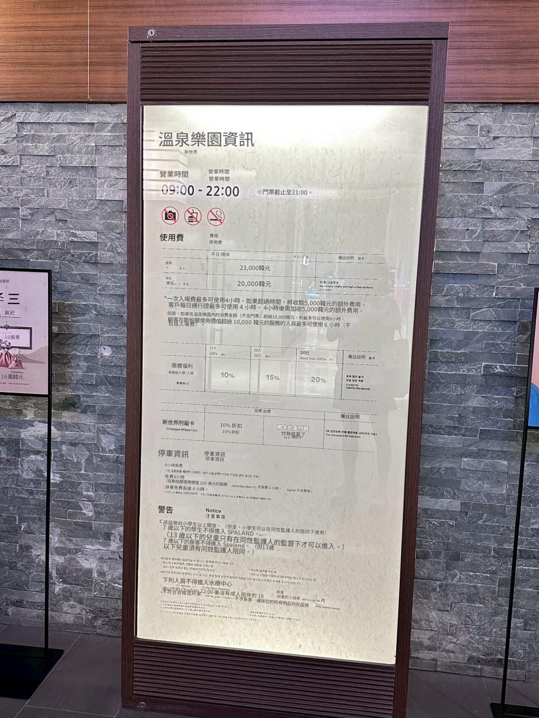 我們是在KKDAY買一次性入場,最多可使用4小時, 超過時間加收每小時 5,000 韓元,若館內消費(如餐廳、按摩等)超過10,000 韓元,可延長使用至 6 小時,小朋友7–12 歲需同性別家長陪同喔! 建議穿著簡便衣物、攜帶基本盥洗用品喔!若之後要出去逛街記得帶化妝包啦!