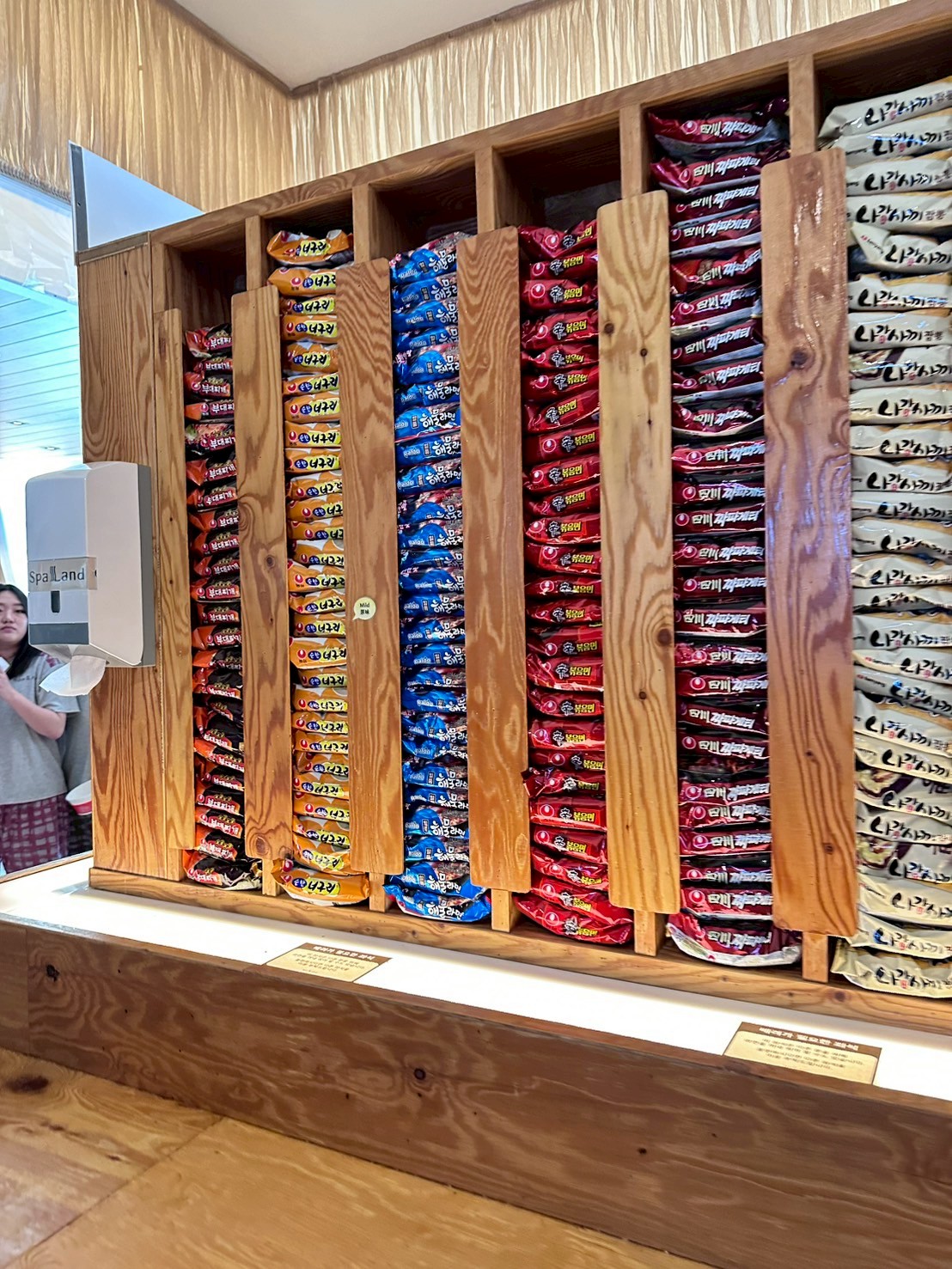 SPA LAND 汗蒸幕這邊泡麵機真的太好玩!!天啊!韓國人簡直是把泡麵文化發揚光大,立體泡麵牆,各種口味泡麵;都選擇障礙了!玩了一輪,肚子餓就一定要來吃吃泡麵!!!