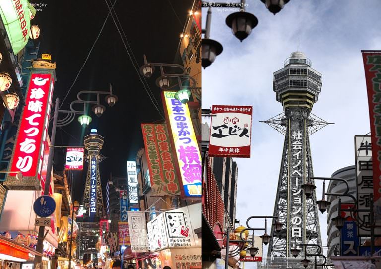 大阪親子之旅除了歡樂的神戶動物王國、海遊館天保山等處,再來就是下榻的FP HOTELS難波南飯店附近的通天閣 (惠須美町)這邊,而這邊白天與夜晚的感覺都不同,正好因為我們就住在附近,所以也很幸運的日景與夜景都能看得到喔!